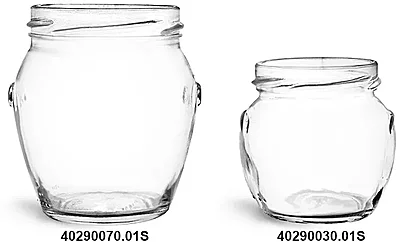 These clear glass honey pot jars are a charming way to package a variety of products. The tapered, round jar style provides a large opening with softly rounded shoulders and a small, yet sturdy base. Molded with a lug finish, these clear glass jars can be paired with plastisol lined lug metal caps (sold separately) in an assortment of colors.