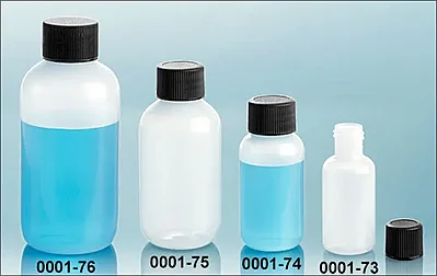 Plastic Bottles, Natural LDPE Boston Round Bottles w/ Black Lined Screw Caps