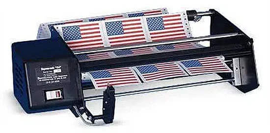 These new high-speed units can enhance application of most large labels in rolls up to 9" in diameter (15" with optional Roll Holder Extension Kit!). They permit efficient "FAST" continuous labeling of products with the labels waiting for you and not you waiting for the labels. Handles one-up fanfold labels of any length, many row formats up to 15" wide. For long labels Micro-Switch Extension kit or foot switch required. Adjusts to all widths, and can be changed from roll to fanfold in seconds, without tools! Dispensing table can be removed in seconds for cleaning or changing to a sharp edge table. The machine comes with a standard edge table, but upon request if you will be dispensing Mylar/foil or very thin labels a sharp edge table is available in replacement. Power labelers plug into standard 110 volt power sources. Any dispenser can be furnished with 220 Volt 50hz motor and European Plugs on a special order basis. The DISM-U60 is not available with DC motors.