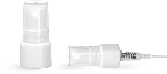 These white smooth polypropylene fine mist sprayers are available in bags of 144 or bulk cases for the best discount. 2580-37 and 2580-38 both have a 12 mm necks while 2580-39 has a 13 mm neck. Making them a great option to pair with the 3 ml, 5 ml and 10 ml glass vials. Click the View Addons buttons to view each fine mist sprayers compatible vial.