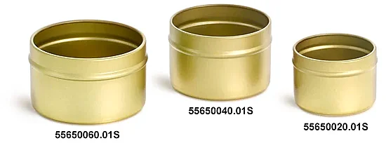 Purchase our gold metal tinplated steel tins in bulk for the best savings. Compatible gold metal covers are available separately.