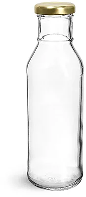Glass Bottles, 12 oz Clear Glass Barbeque Sauce Bottles w/ Gold Metal Lug Caps