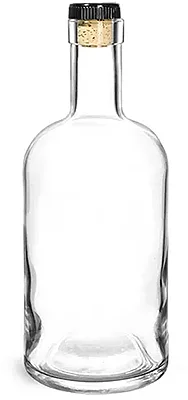 Glass Bottles, Clear Glass Bar Top Bottle w/ Black Ribbed Bar Top Natural Corks