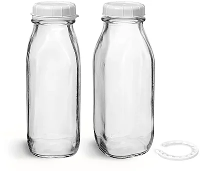 Glass Bottles, Clear Glass Tall Dairy Bottles With White Tamper Evident Caps