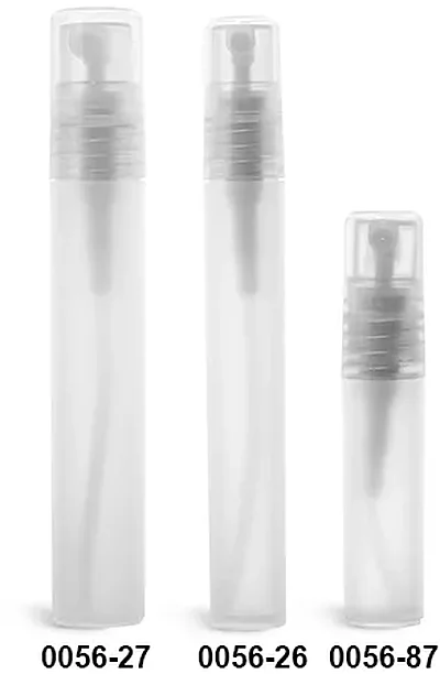 Natural frosted plastic vials with natural fine mist sprayers are composed of polypropylene and available in three compact sizes that could package a range of amenities, like breath freshener and perfume samples. The tall, slender shape of these mini cylinders makes them easy to store in purses, backpacks, and makeup bags, for on-the-go use. The natural fine mist sprayers include styrene hoods for secure storage. The frosted finish on the plastic vials offers both a stylish appeal, as well as semi-transparency to allow for product visibility.