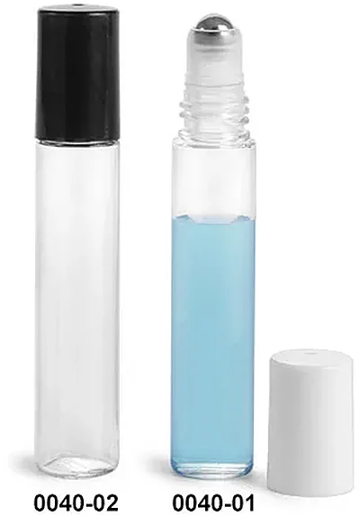 Plastic Vials, 10.6 ml Clear PET Roll On Containers w/ Stainless Steel Balls and Caps