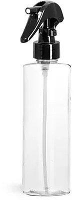 Plastic Bottles, 8 oz Clear PET Cylinder Bottles w/ Black Mini Trigger Sprayers
