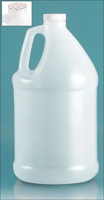Plastic Bottles, Natural HDPE Jugs w/ White Ribbed Induction Lined Caps