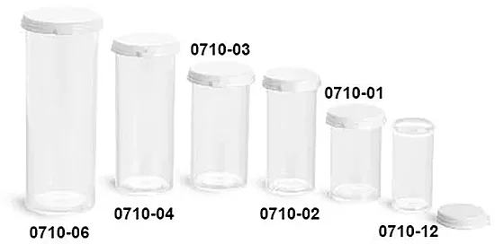 Clear styrene dram plastic vials with snap top caps include high clarity for showcasing your products within. These dram plastic vials comprise a lip at the neck that will snap the white caps in place for a secure seal. In the variety of sizes, clear styrene dram plastic vials with white snap top caps could package bath salts, dry herb samples, and more.
