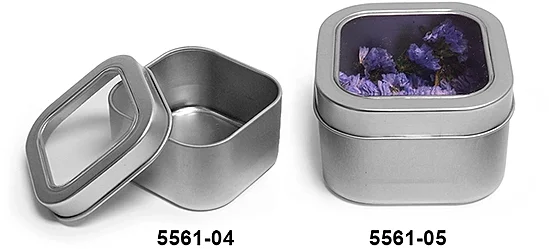 Cap Option:8 Oz Square Metal Tins w/ Clear View Tops
