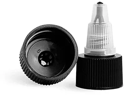 Dispensing Caps, Black/Natural Plastic Twist Top Caps