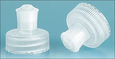 These natural plastic dispensing caps have polypropylene bases and natural PE plastic spouts. To use, simply pull upwards on the spout to open and dispense the product and push down on the spout to snap closed. These dispensing caps could be ideal for dish detergent, household cleaning products, personal care products and more!