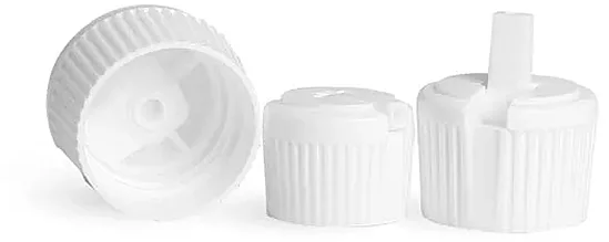 The white LDPE flip spout closures have a 3.0 mm orifice for dispensing and are available in three sizes, 20/410, 24/410, and 28/410. The flip top closure is designed with a dispensing spout that dispenses product when the flip top is open, and the spout retracts into the closure when not being used. The white plastic spout caps can be purchased in bags of 144 or by the case in bulk quantities, and are a great closure selection for dispensing many liquid products. Be sure to match the cap code of the container, with the cap code of your closure choice for proper compatibility.