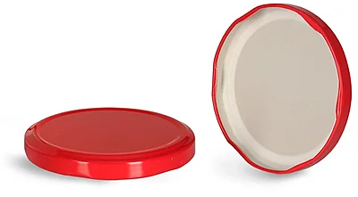 Showcase your range of products with these red metal lug jar caps, including plastisol liners, when paired with clear glass jars in various styles and sizes. These red jar caps include a lug finish that matches lug jars, including hexagon jars, square glass jars, and more highly popular for food products. The plastisol liners create a hermetic seal around the rim of the glass jars when heated and cooled correctly. Test these bold red metal jar caps with your choice of glass jars and sealing method to ensure complete compatibility.
