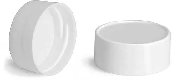 The white polypropylene smooth unlined caps is available in a 43/485 size. These plastic caps are sold in bags of 144 pieces per bag or bulk cases of 1,400 pieces for the best discount. Our 4 ounce clear PET plastic spice jars are compatible with this cap option.