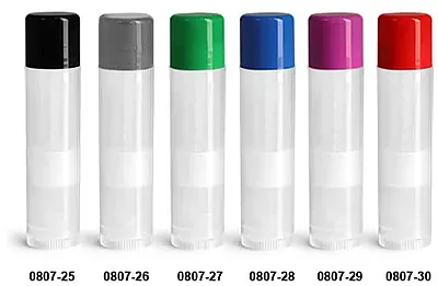 Natural Polypropylene Lip Balm Tubes w/ Colored Caps