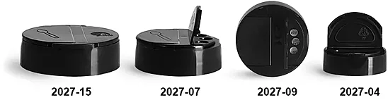 Dispensing Caps, Black Polypropylene Spice Caps w/ Pressure Sensitive Liners