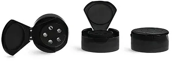 Dispensing Caps, Black Polypropylene Spice Caps w/ Pressure Sensitive Liners