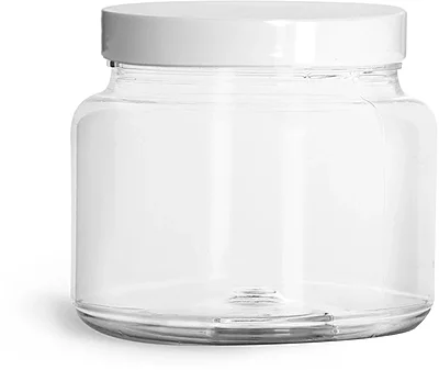 Plastic Jars, 22 oz Clear PET Straight Sided Jars w/ Smooth White PE Lined Caps