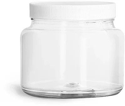 Plastic Jars, 22 oz Clear PET Straight Sided Jars w/ Ribbed White PE Lined Caps