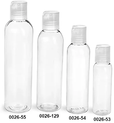 Plastic Bottles, Clear PET Cosmo Round Bottles w/ Natural Disc Top Caps