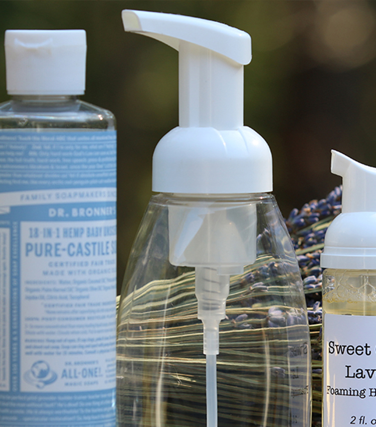 - 250 ml clear PET bottles w/ white foamer pumps