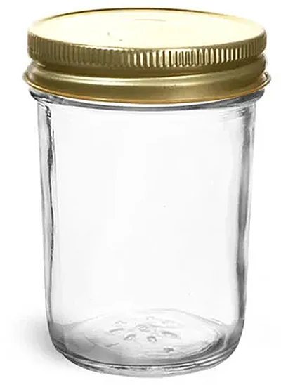 Clear Glass Jars, 8 oz Clear Glass Jelly Jars w/ Gold Metal Plastisol Lined Caps